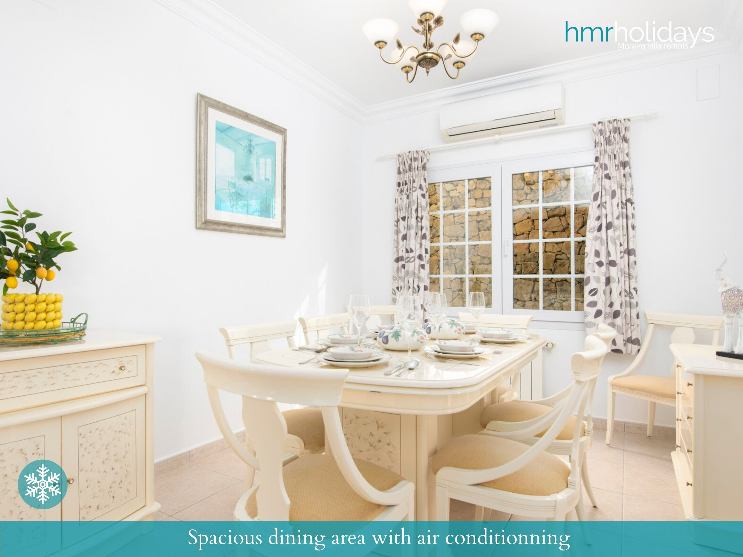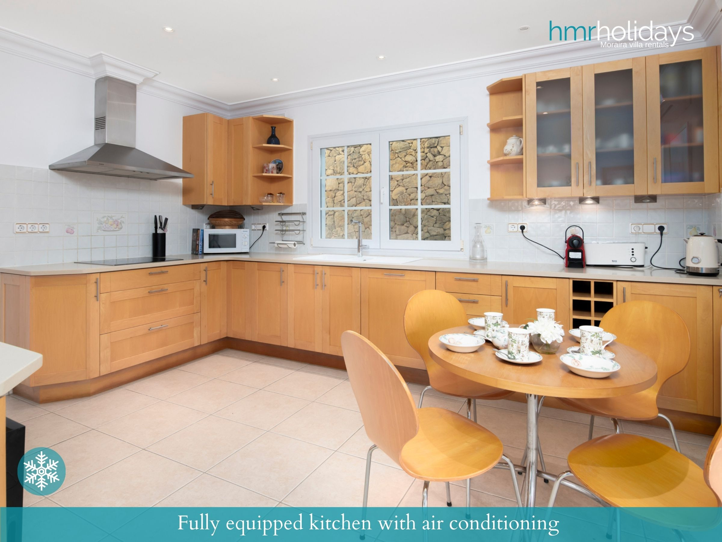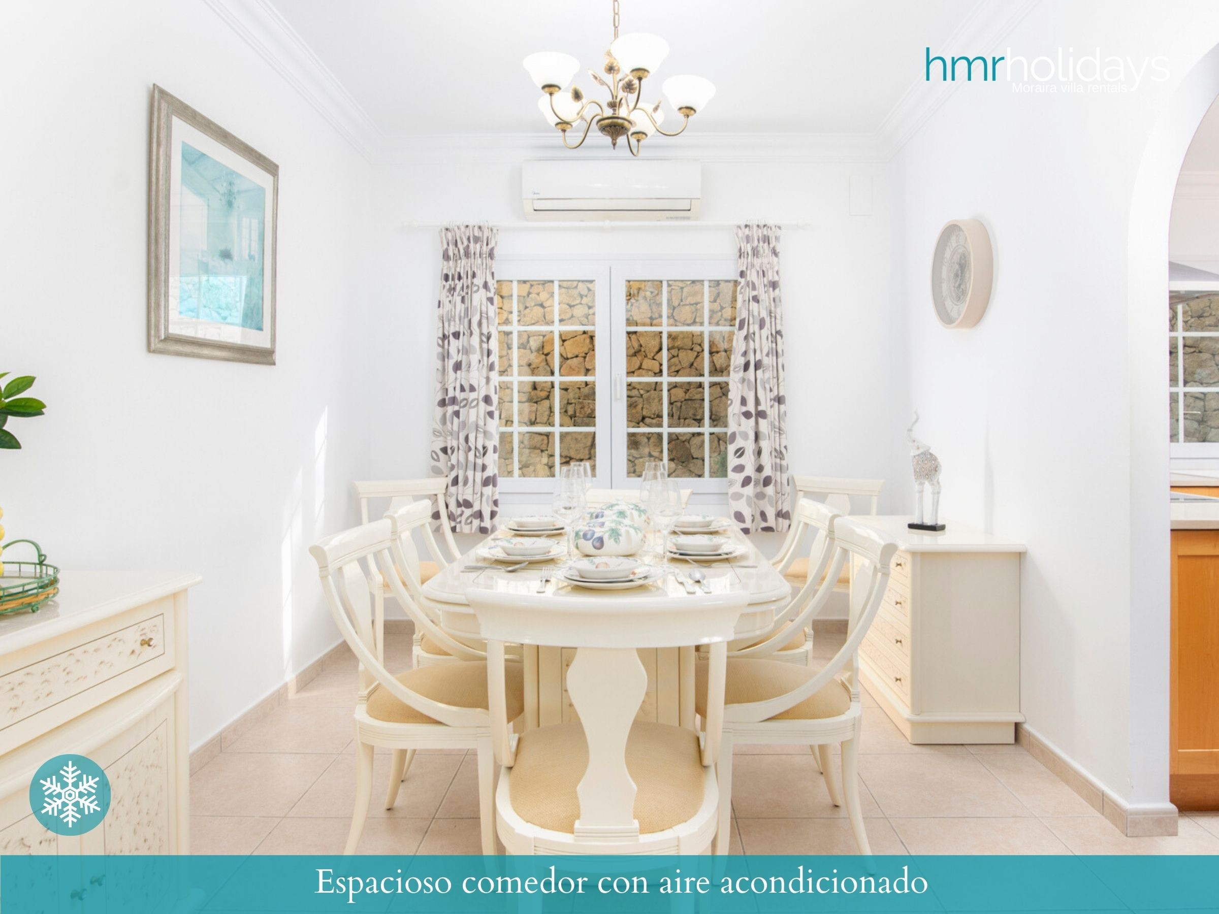 Para un confort total durante todo el año, la villa dispone de aire acondicionado en todas las estancias, convirtiendo a Villa Atria en una excelente opción tanto para vacaciones de verano como para escapadas en primavera y otoño.