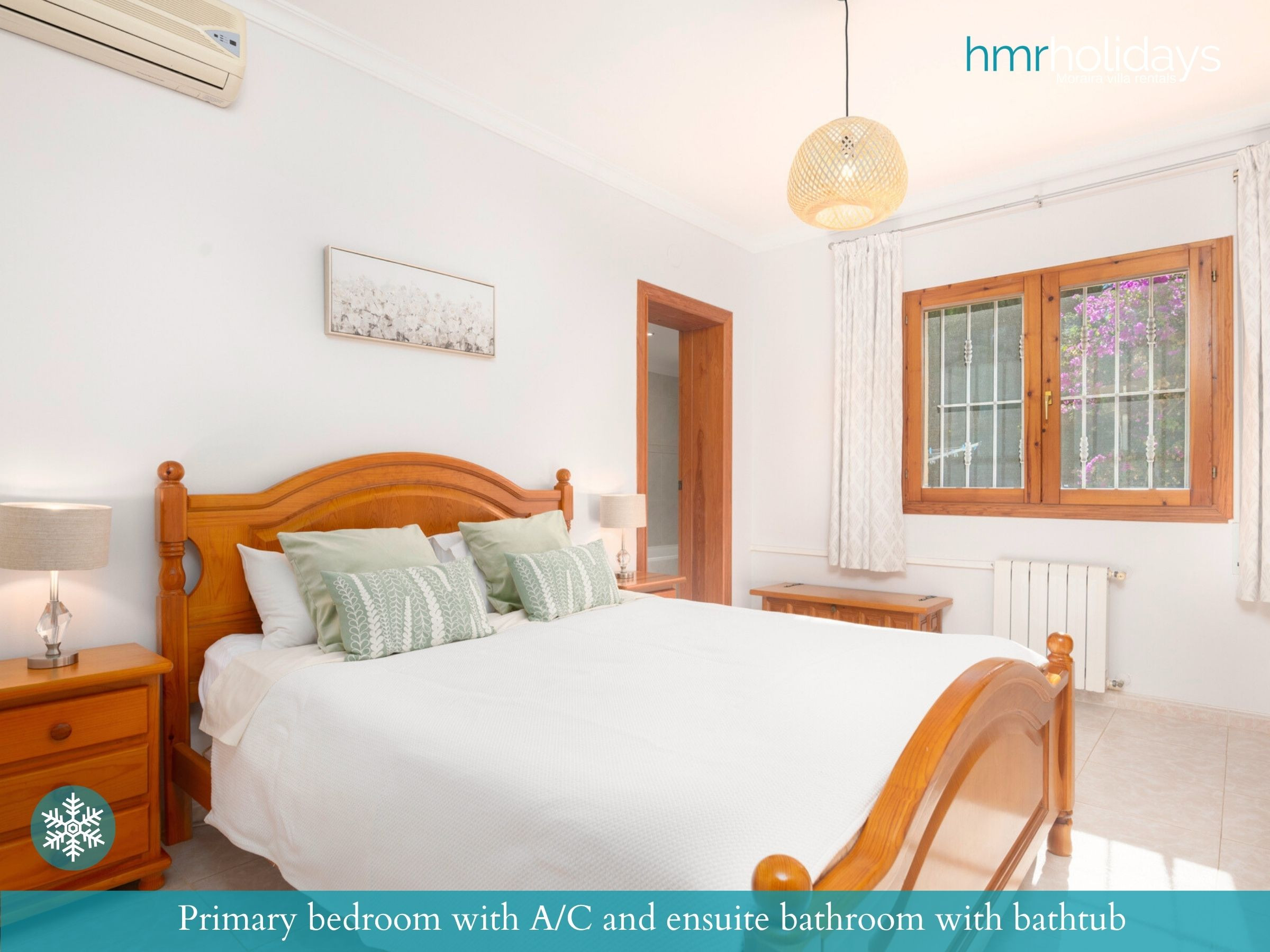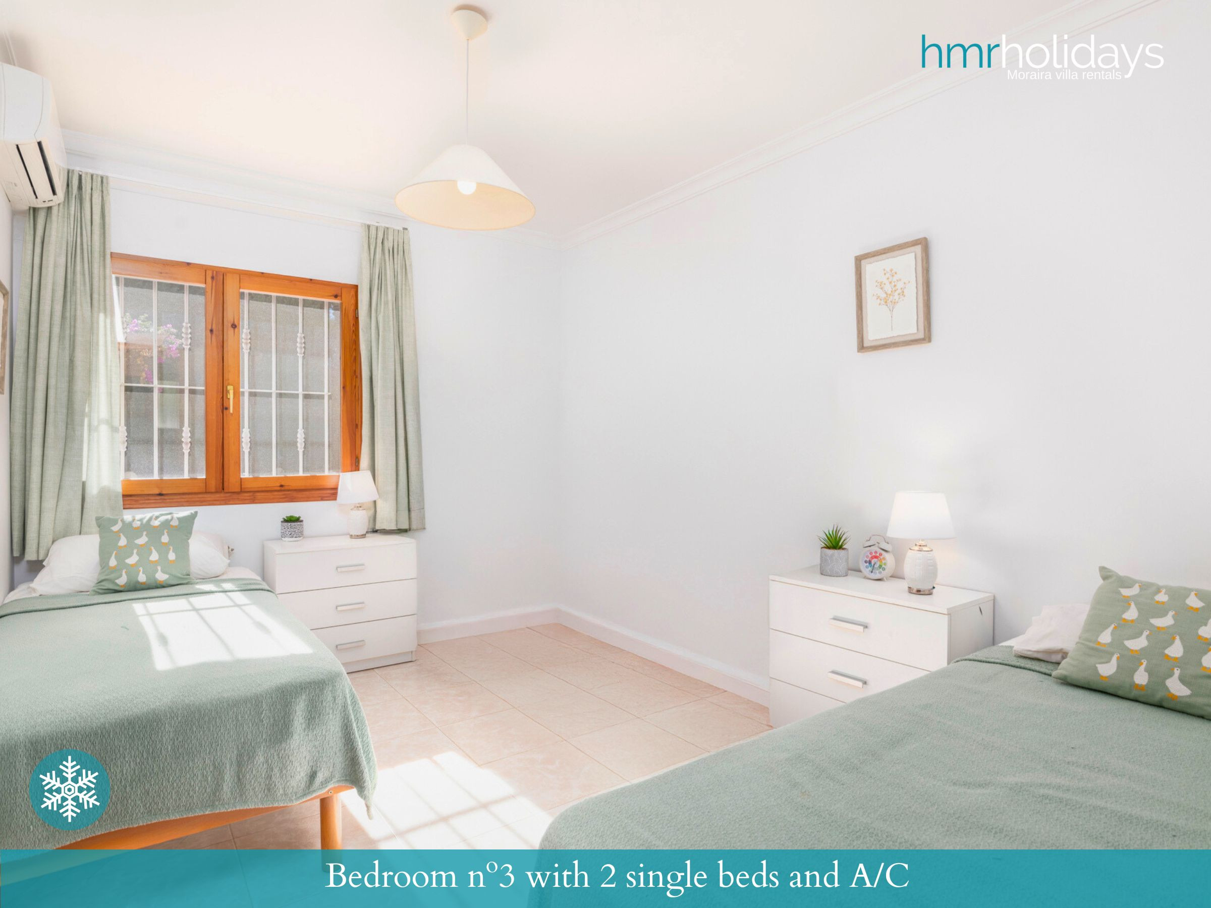 La villa cuenta con 3 dormitorios con aire acondicionado para hasta seis huéspedes.