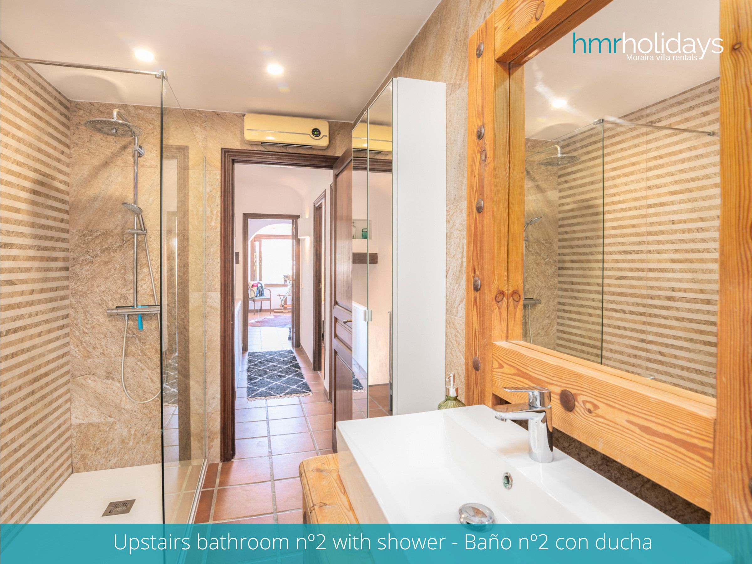 La villa cuenta con cuatro dormitorios confortables y dos baños, ideal para familias o grupos de amigos que buscan una estancia relajada junto al mar. Todos los dormitorios disponen de aire acondicionado y colchones de calidad para garantizar el máximo descanso.