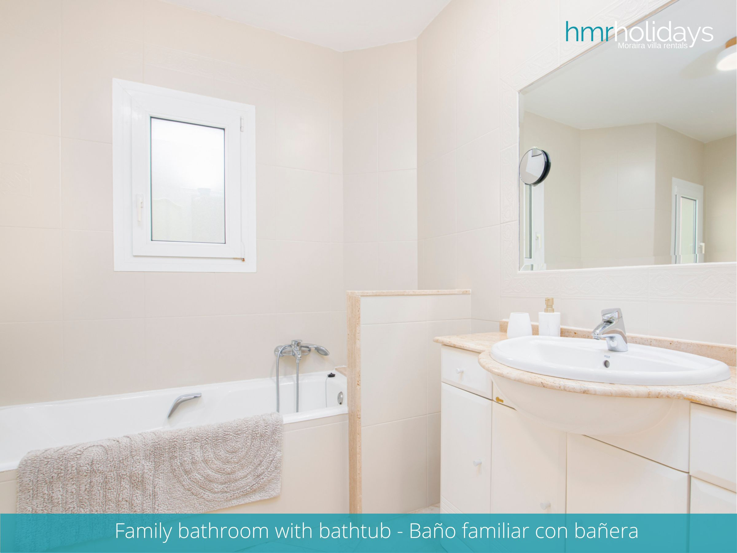 Cuenta con dos baños, uno en suite con ducha y un baño familiar independiente con bañera.