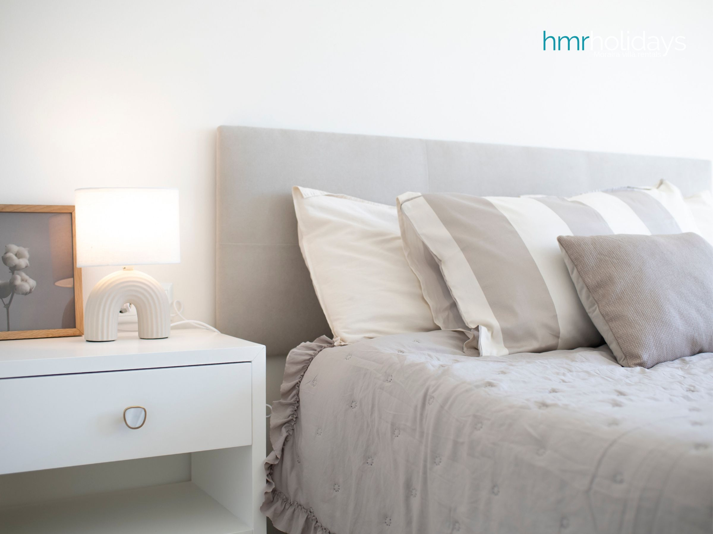 La villa dispone de aire acondicionado en todas las estancias, lo que garantiza una estancia cómoda incluso durante los meses más calurosos. En el interior, la distribución es práctica y funcional, con tres dormitorios: un dormitorio doble y dos dormitorios con camas individuales, ideal para familias o grupos de amigos.