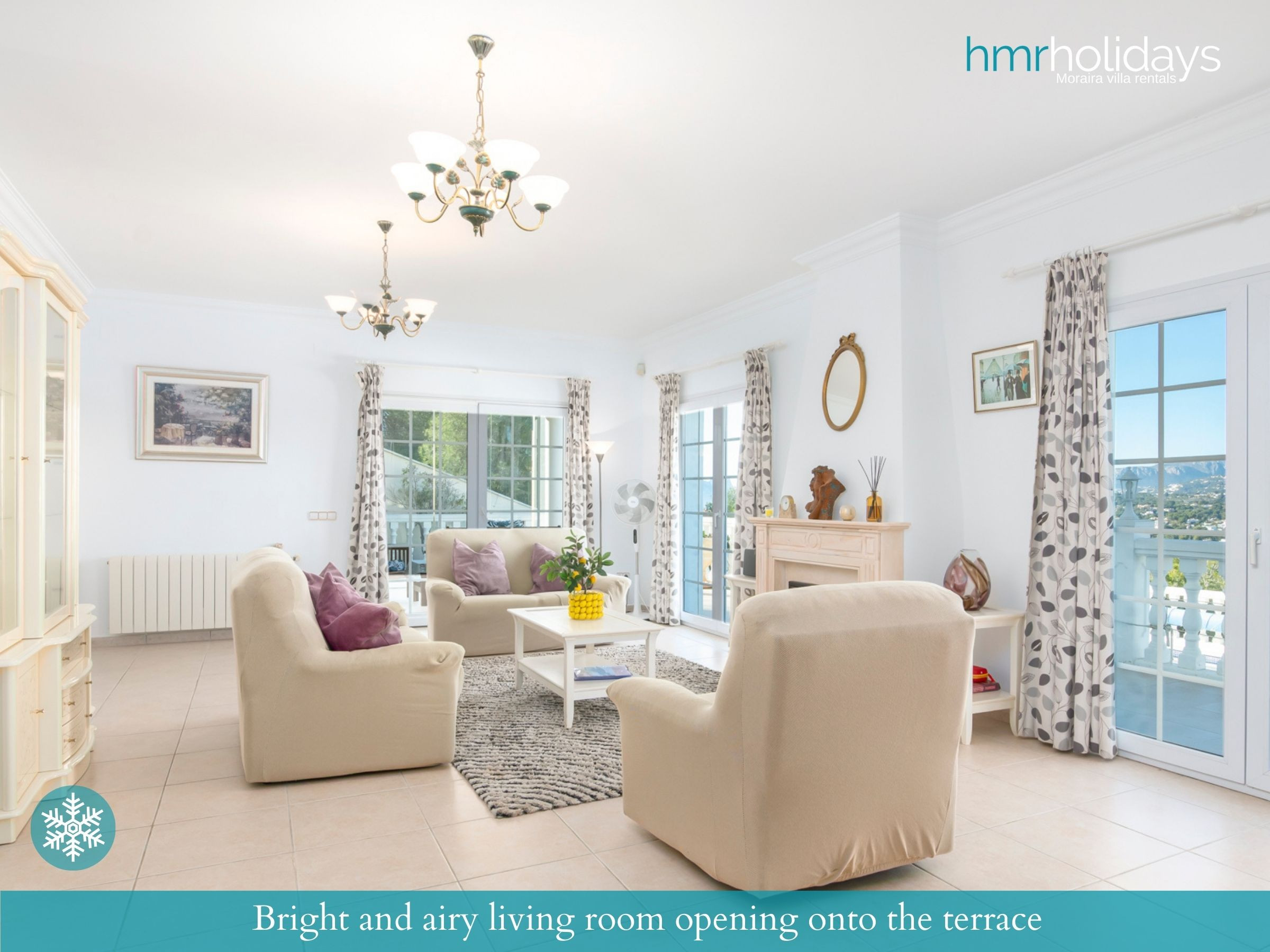Inside, Villa Atria is characterised by large, bright living spaces filled with natural light. The open and airy layout creates a relaxed Mediterranean atmosphere, perfect for enjoying time together after a day at the beach or exploring Moraira and the Costa Blanca.